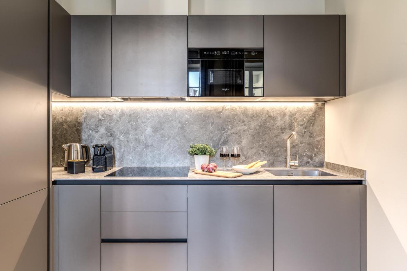 One-Bedroom Apartment. This apartment is comprised of 1 living room, 1 separate bedroom and 1 bathroom with a shower and free toiletries. In the well-fitted kitchen, guests will find a stovetop, a refrigerator, a dishwasher and kitchenware. The apartment offers air conditioning, a washing machine, a tea and coffee maker, a wardrobe and a flat-screen TV. The unit offers 2 beds. ;